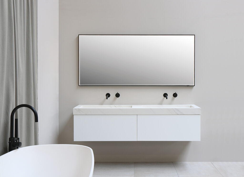 De Dock 40 heeft als basis een polystone of quartz wastafel en is verkrijgbaar in 4 breedtematen. Aangezien de wastafel 40 cm diep is, houdt u genoeg bewegingsruimte over in de badkamer.