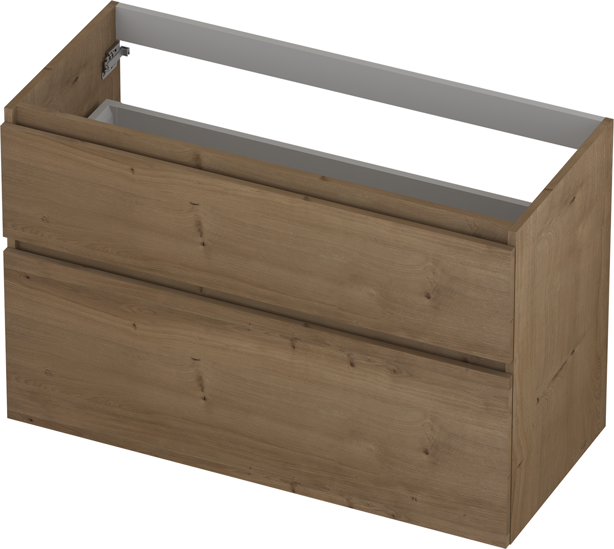 Deze onderkast is met twee ruime asymmetrische softclose lades dé perfecte oplossing voor het opbergen van alle badkamerspullen. Verkrijgbaar in zes verschillende breedtematen en in combinatie met twee meubels uit te breiden tot een breedte van 180 cm. Verkrijgbaar in vier verschillende fineer kleuren.