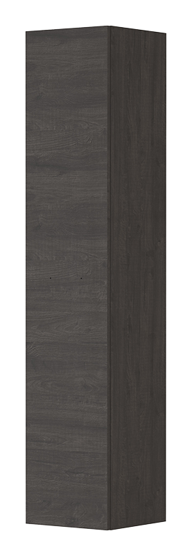 Hoge kast met greep, waarvan de deur aan beide kanten kan openen, voorzien van 5 vakken met houten legplanken, verkrijgbaar in drie kleuren.
