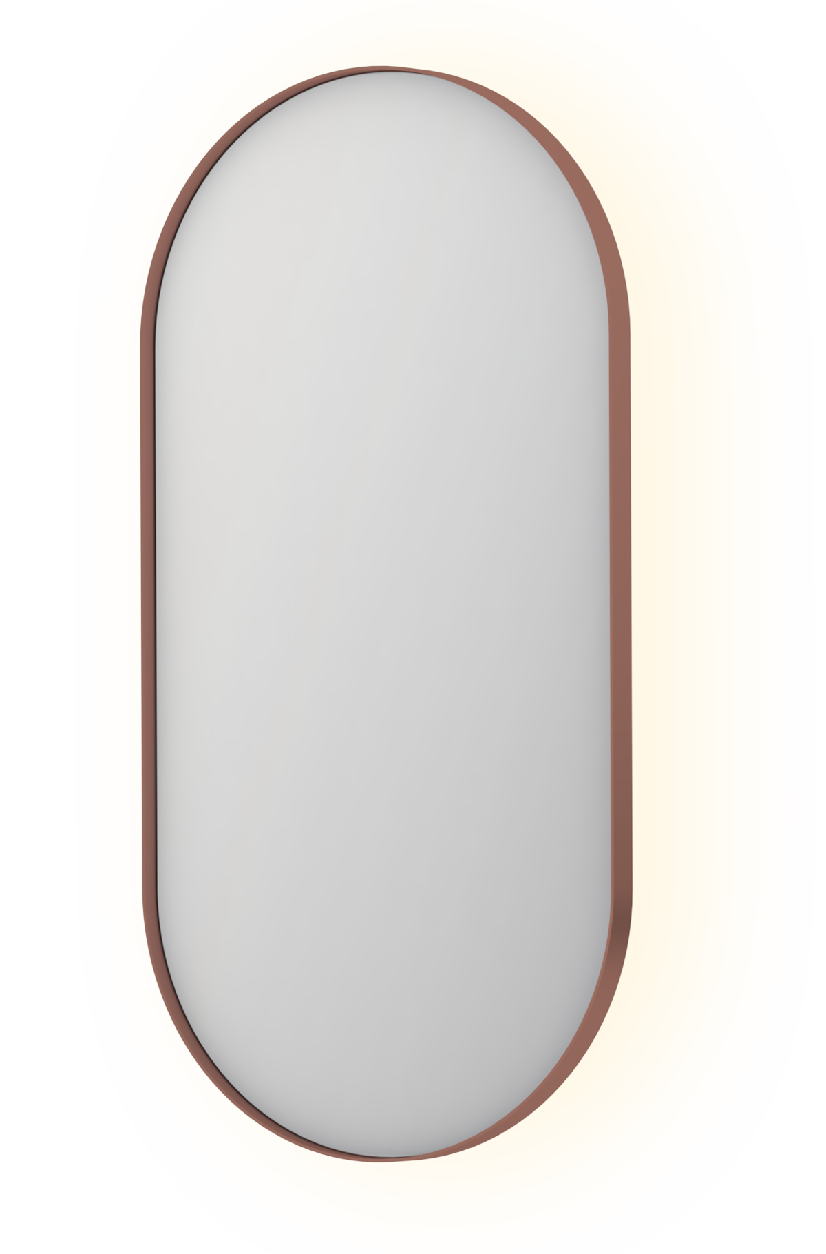 Ovale spiegel verzonken in kadar met indirecte LED, colour-changing (3000-6000K), dimbaar, spiegelverwarming en sensorschakelaar, spiegel kan zowel horizontaal als verticaal opgehangen worden.